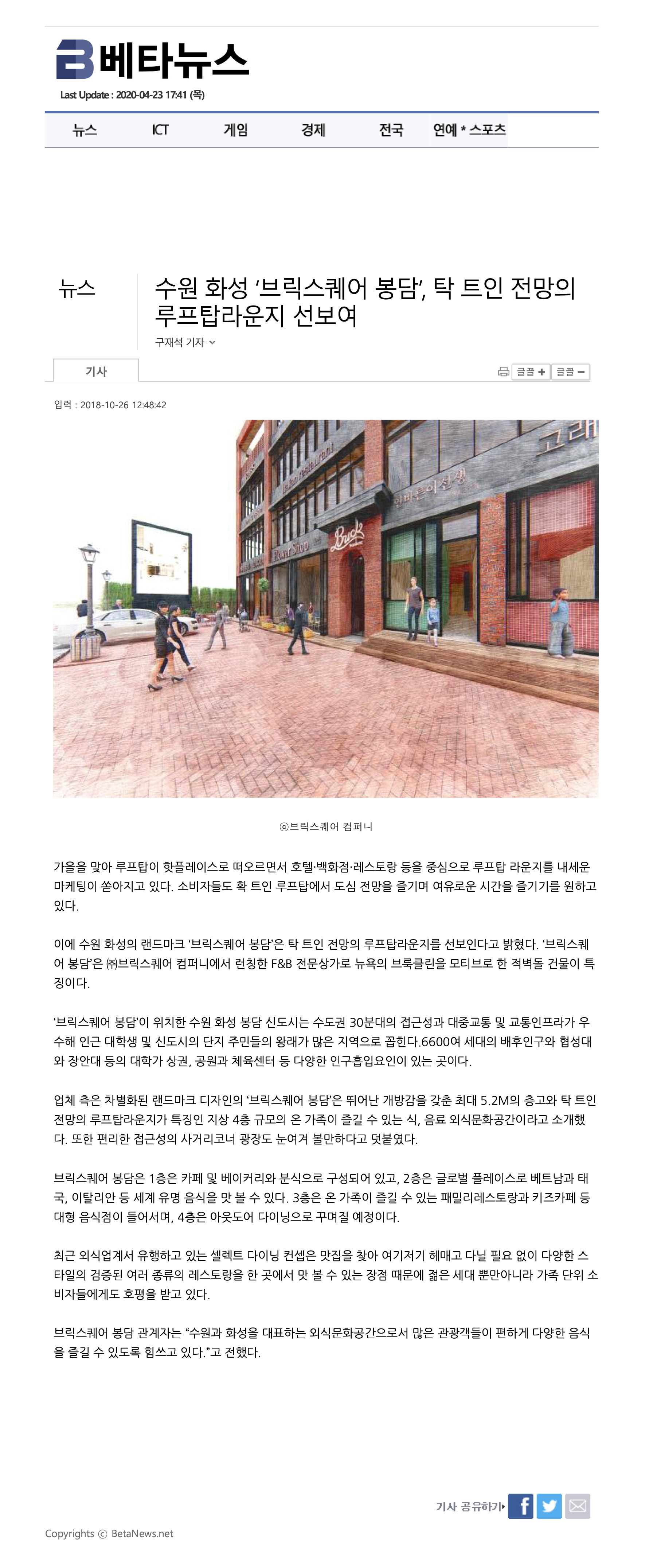 F&B상가 '브릭스퀘어 봉담', 확 트인 5.2M 층고의 신개념 셀렉트 다이닝으로 주목